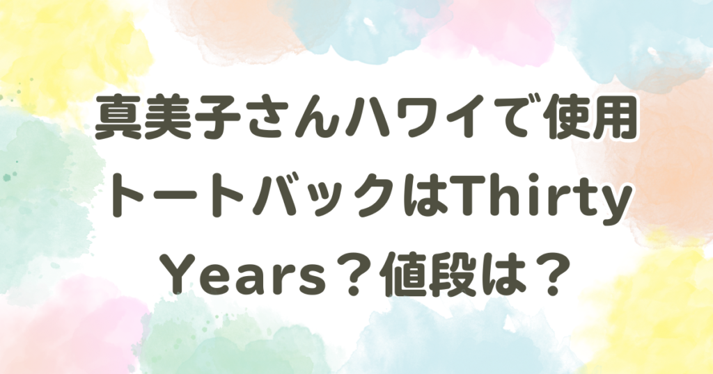 真美子さんハワイのトートバックはThirty Years?値段は?