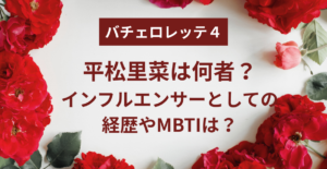 今回の記事では、バチェロレッテ4である平松里菜さんが何者なのか、経歴や大学、インフルエンサーとしての発信スタイル、MBTIから見えてくる性格まで徹底的に調査してまとめていきます。