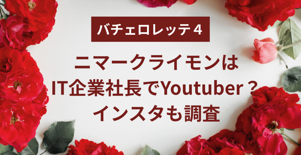 【バチェロレッテ4】ニマークライモンはIT企業社長でYoutuber?インスタも
