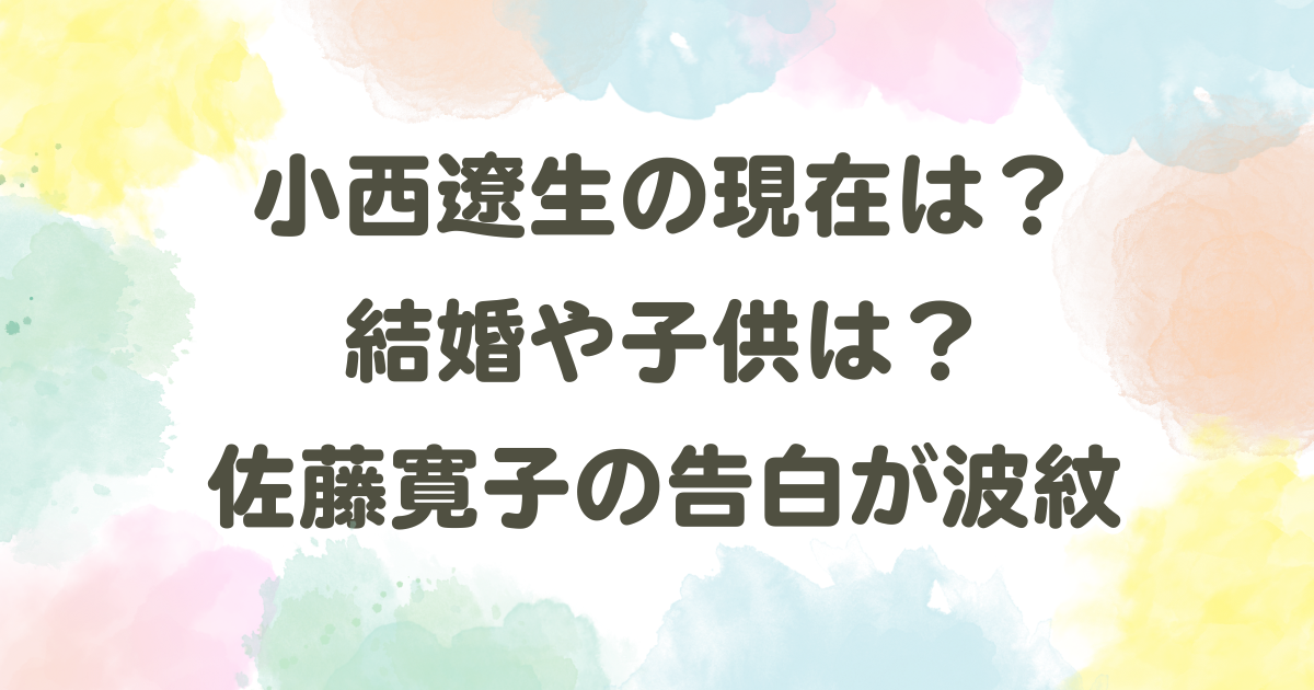 今回の記事では、小西遼生の現在はどうなっているのか、結婚や子供をめぐる報道の整理、そして佐藤寛子の告白がなぜこれほど波紋を広げているのかを紹介します。