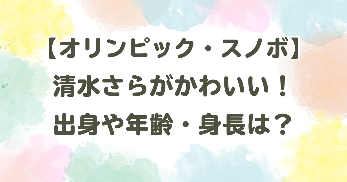 - 清水さらはスノーボード女子ハーフパイプで注目を集める10代の新世代選手