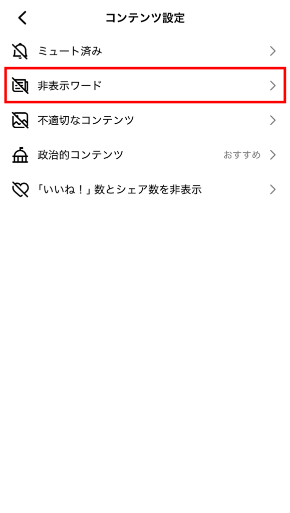 ③ 「非表示ワード」をタップする