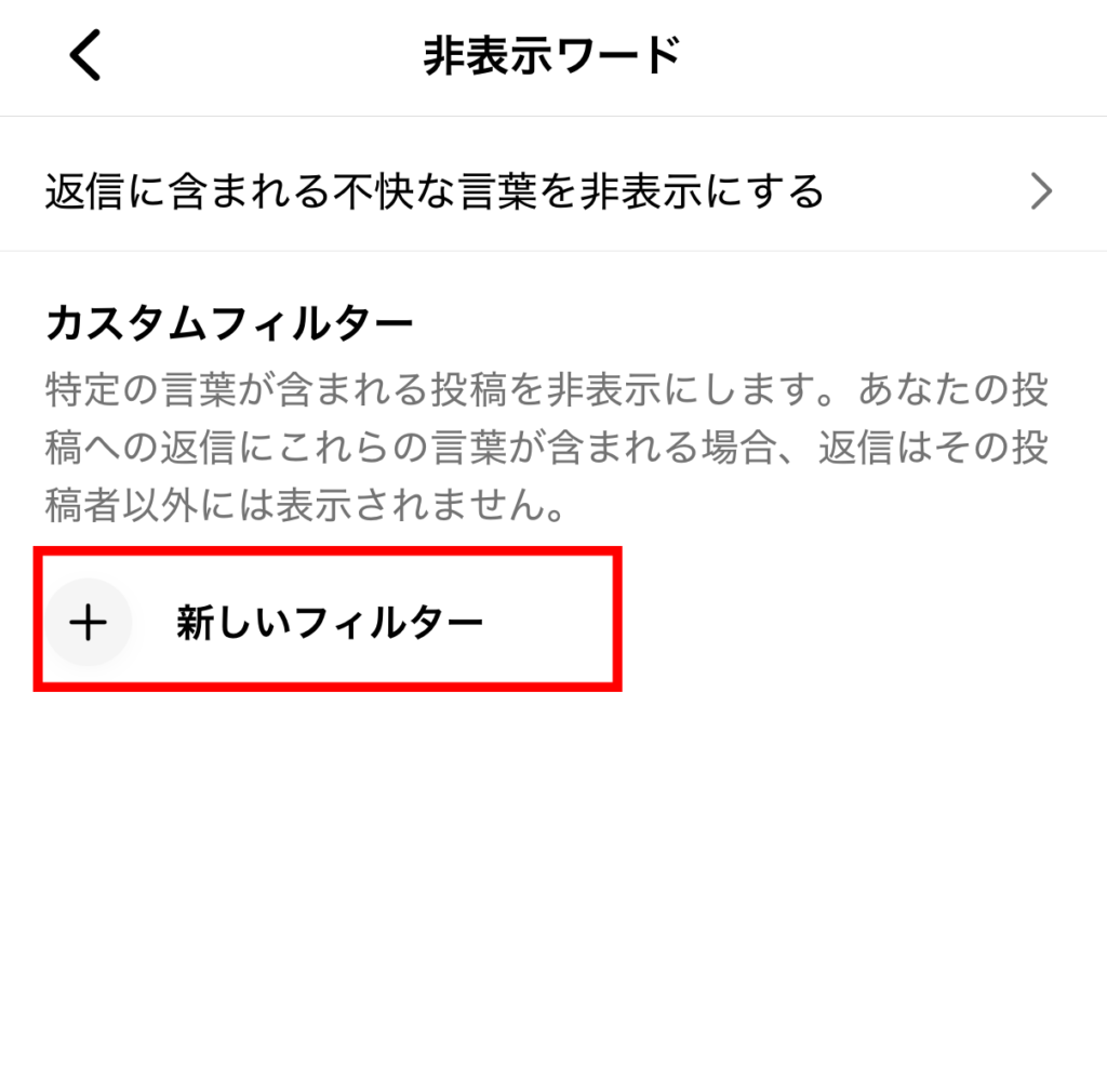 ④ 「新しいフィルター」をクリック