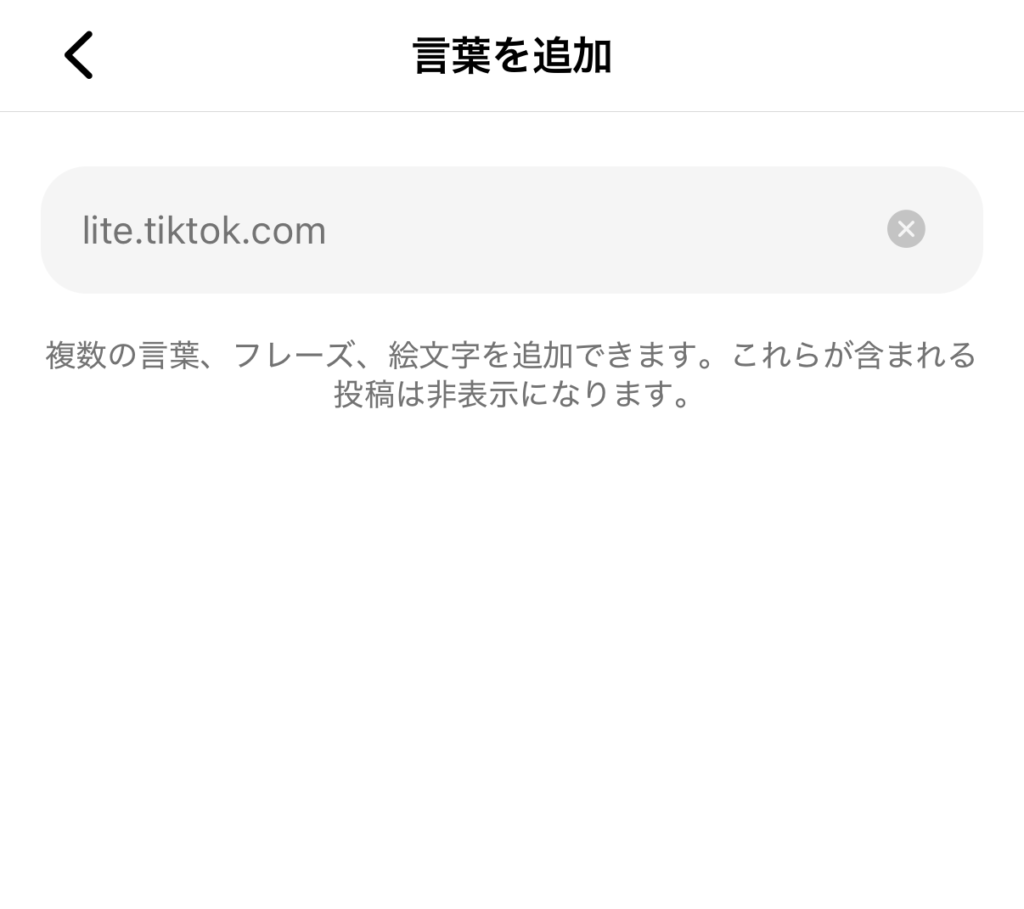 ⑤ 「言葉を追加」をタップして、lite.tiktok.comを入力して保存をして完了